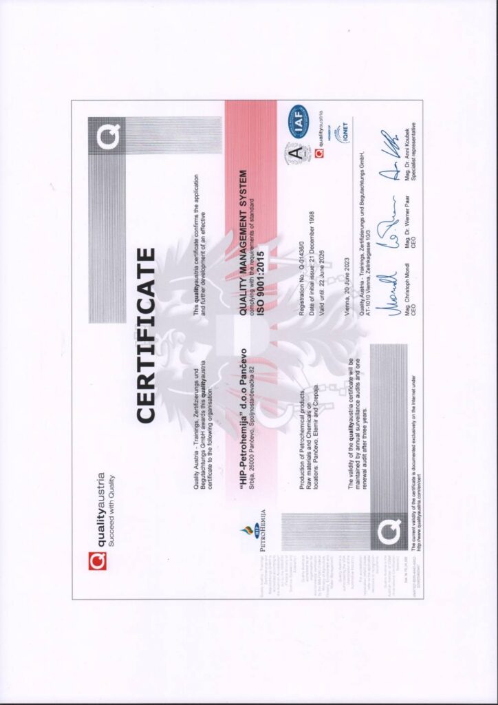 U proizvodnji koristimo isključivo sertifikovane sirovine renomiranih proizvođača, uz kompletnu tehničku i sertifikacionu dokumentaciju, čime obezbeđujemo pouzdanost, bezbednost i konstantan kvalitet proizvoda.